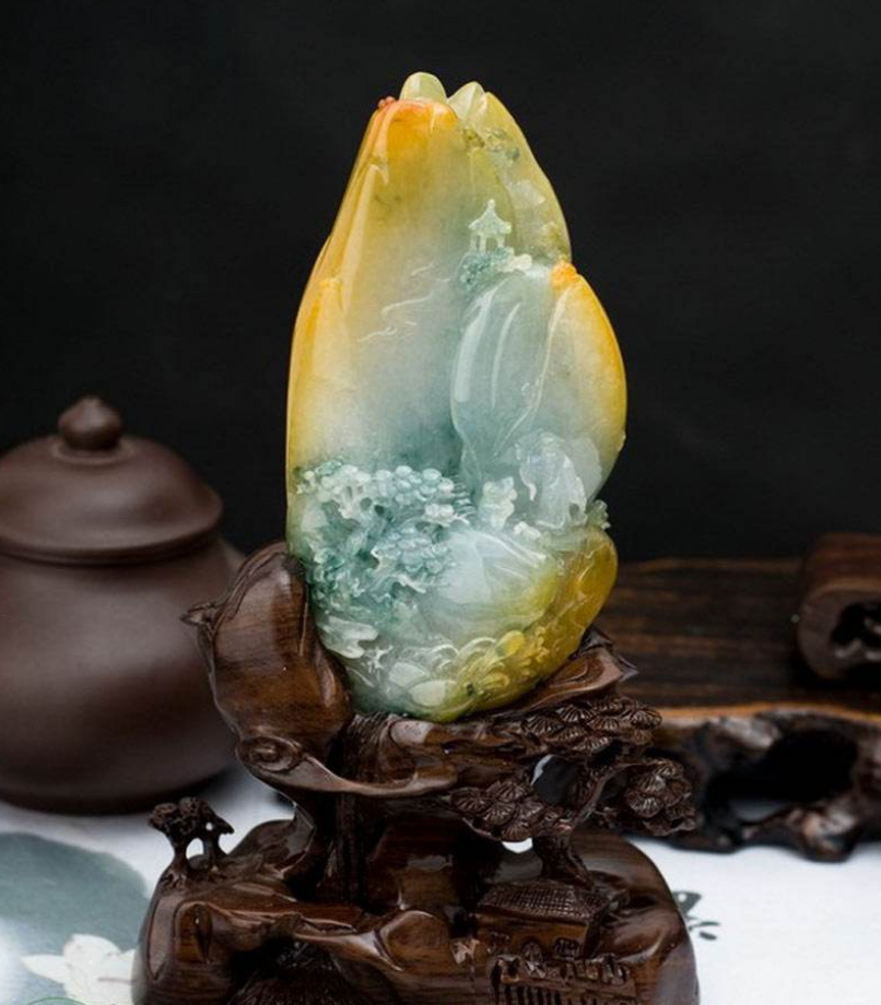 这种种水色俱佳的翡翠摆件在市面上很少见,一般是大师精心设计,而且大多是有人要定制,商家才会将种水色俱佳的翡翠原料打造成摆件。
