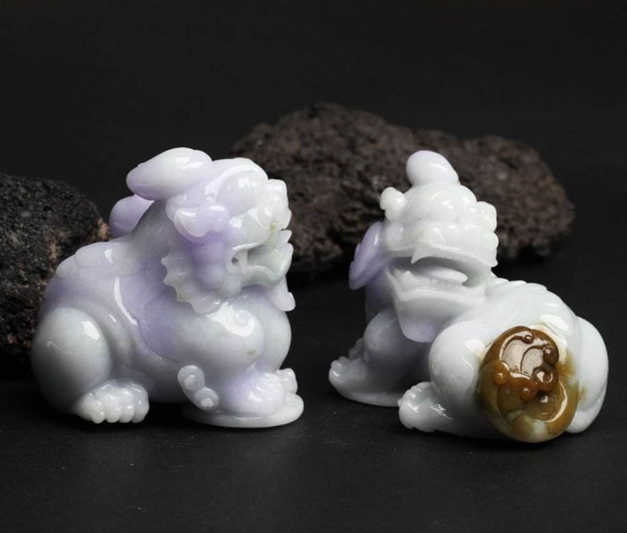 翡翠麒麟摆件寓意给人们带来祥瑞安康,很适合放在家里的客厅,翡翠貔貅摆件、翡翠白菜摆件等寓意招财进宝、生意兴隆,很适合放在门店。