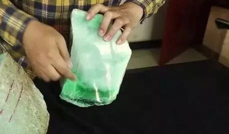 今天要给大家分享一件重器了,一件高品质色料的讲解,这块石头是我们从缅甸公盘的外围淘回来的,淘回来的是一块切口料,石头的品质非常的高,在缅甸淘的高品质的玉料,几乎都是这种切口料,因为对于矿主来说,他们不会放过这种值得一搏的玉料。