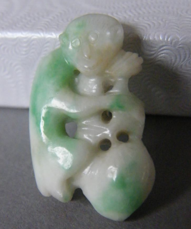 整体比例恰当,表面打磨光滑,题材吉利,但是没有根据料子特征来选择题材的翡翠为三级。