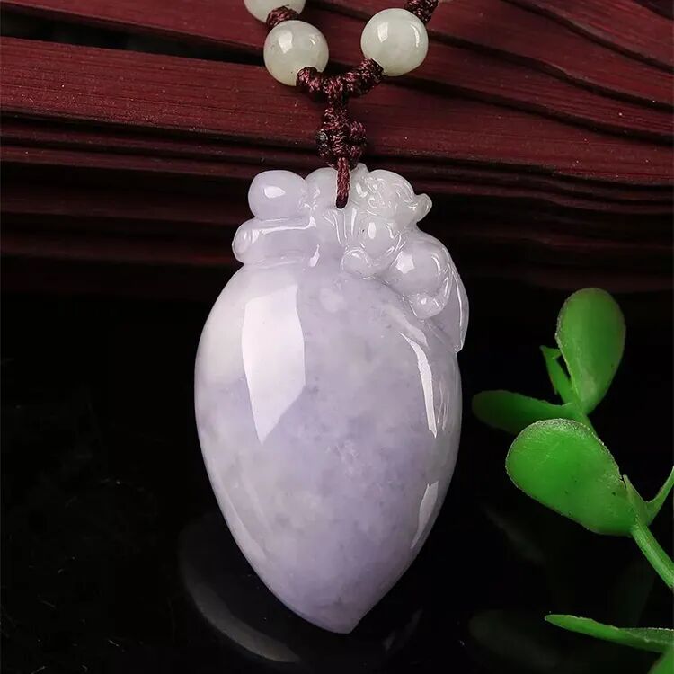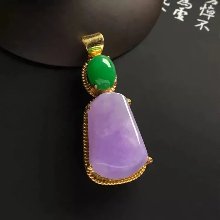 紫罗兰翡翠作为吊坠或者挂件时,有经验的雕刻师和设计师们大多都会选择绿色翡翠去作搭配。