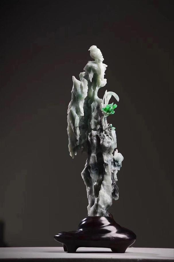 再看这一件作品,一般翡翠人的做法是取绿色,把白的部位丢掉。