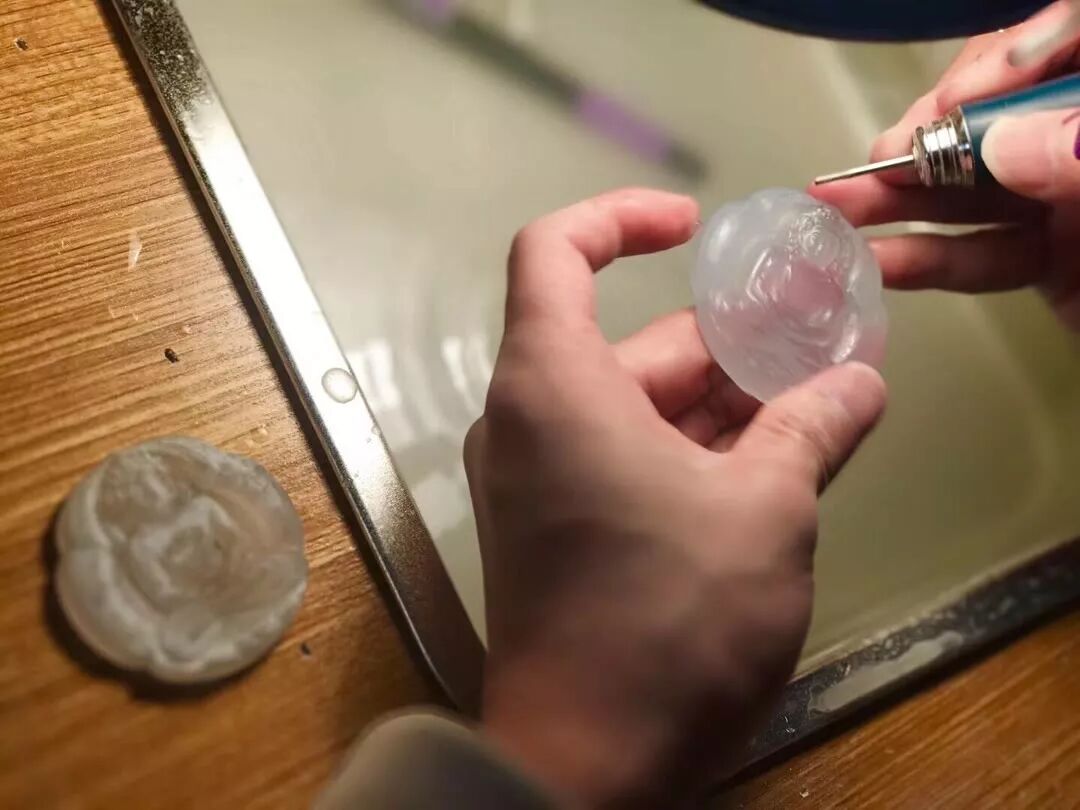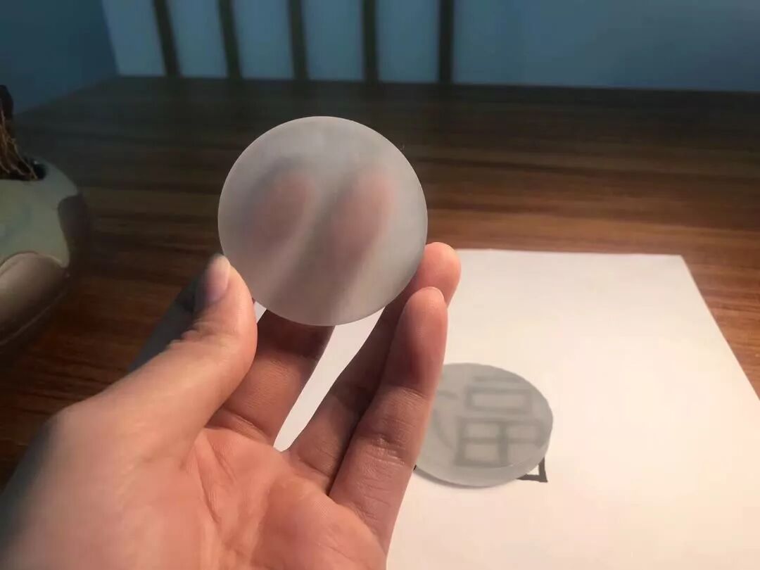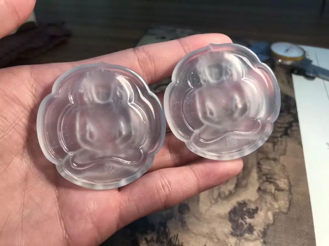 这是一个手镯芯对半切,能做一个对牌,透过镯心能看到手指,肉质细腻种水好,如果您有这样一块手镯芯,您会想拿来做什么呢!