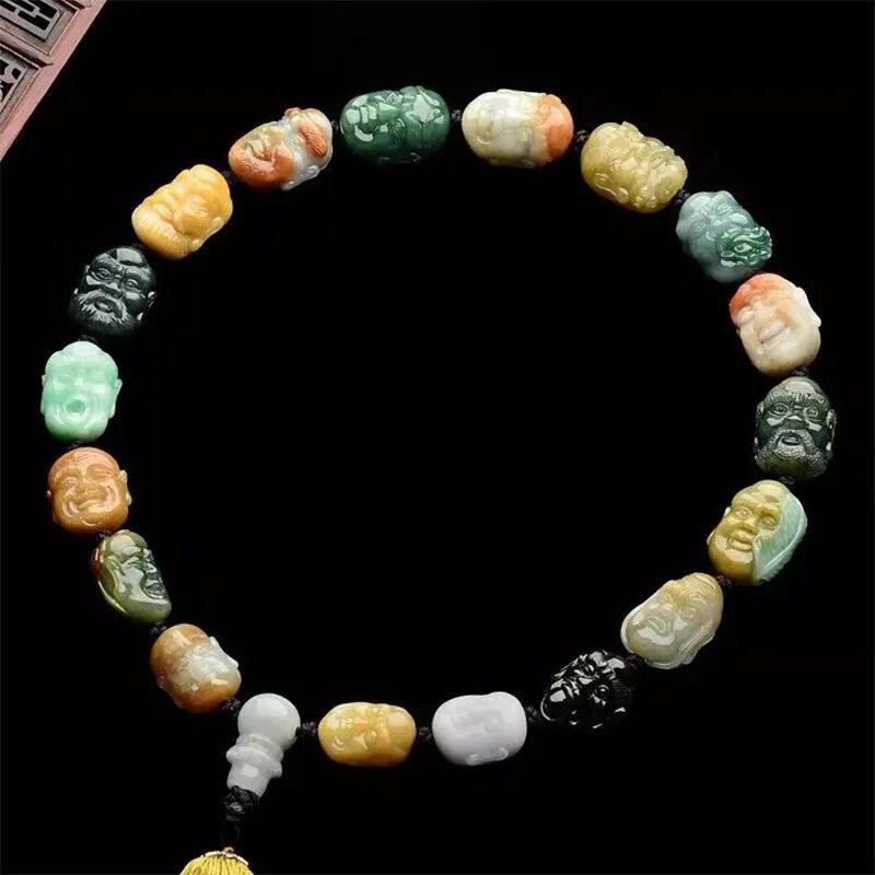 十八罗汉形态各异,各司其职。据说,佩戴翡翠罗汉可以保平安,祛邪恶。