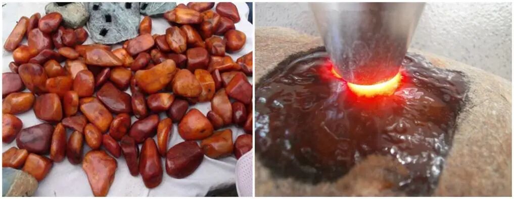 翡翠的焗红色,就是对翡翠样品进行加热,使灰黄、褐黄等颜色的翡翠改变成红色的工艺,是一种加热处理。