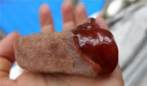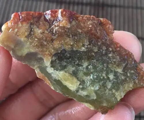 翡翠原石由于受到山火熏烤而致使表面形成红翡。天然烧红是低温烧出来的,而且山火达不到五六百的温度。