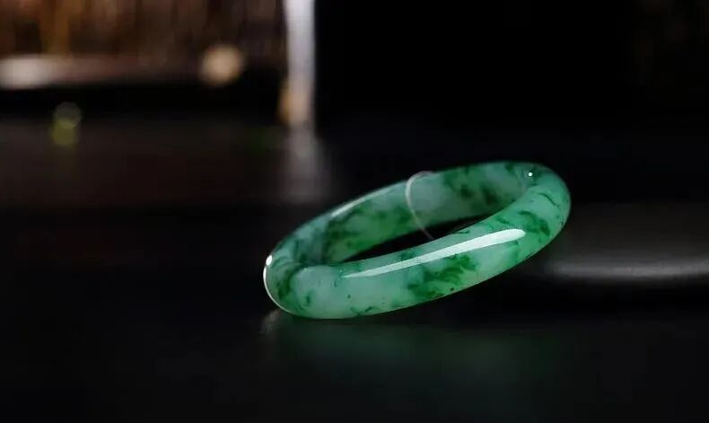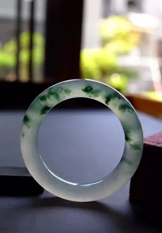 翡翠手镯飘花的色调飘花分布面积越多,越均匀,售价也会更高。
