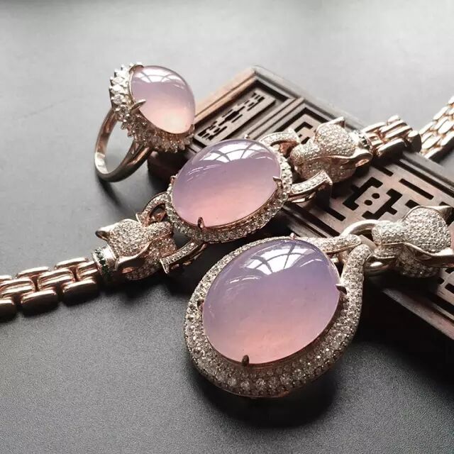一种偏向翡红色调的紫色,他的颜色饱和度通常中等,少见很高饱和度的类型,在紫色翡翠中也不算常见,其价值认同很高。