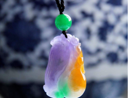 一块翡翠,同时具有绿色、红色、紫色或者同时具有红色、黄色、绿色,在翡翠行业内被称为"福禄寿翡翠"。