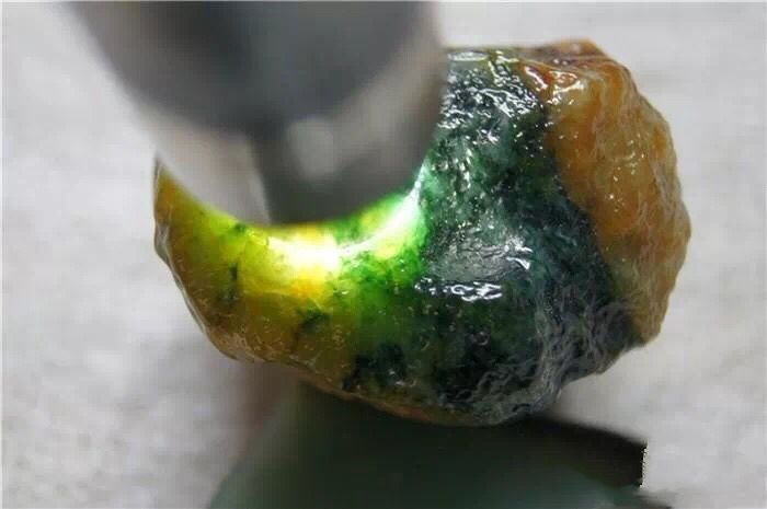 师傅安慰说这块料子其实不算太差,肉质已经化开,彩味十足,中间是比较好的糯冰,外面一层黄雾,进行俏色巧雕后,也可以蜕变成一件精美绝伦的作品!