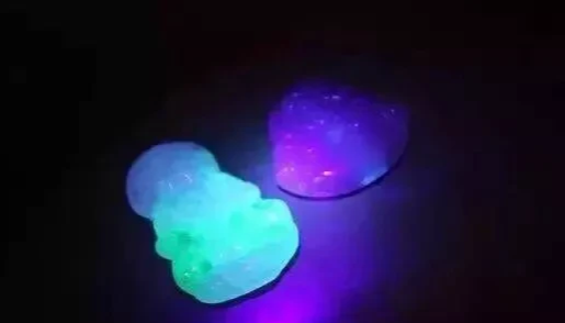 3:紫光灯识别法:你们可以去购买一个紫光灯,因为经过人工染色的“翡翠”内部结构经过酸洗、注胶等,染色后会与灯光形成荧光效应,如果经过紫光灯照射并起荧光的就是染色的物品也就是B+C货。