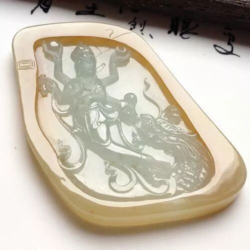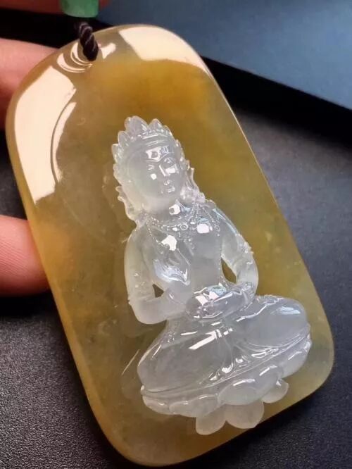 如果具有优良的种水,这种颜色的翡翠往往明媚耀眼同时优雅高贵,加上精致的雕刻图案,往往被赋予丰富美好的寓意。