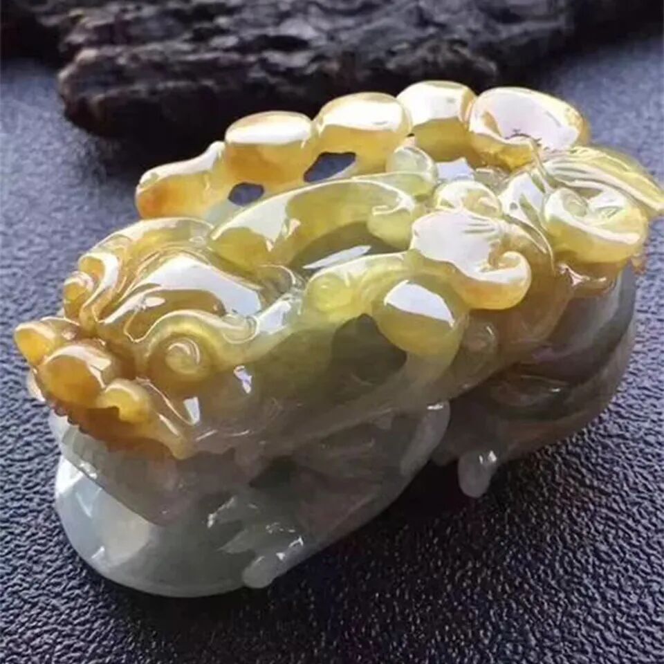 翡翠玉器中的绿、蓝、白等颜色上间有褐黄,这就像其他颜色被褐黄色给吃掉了,这就是“吃黄”。