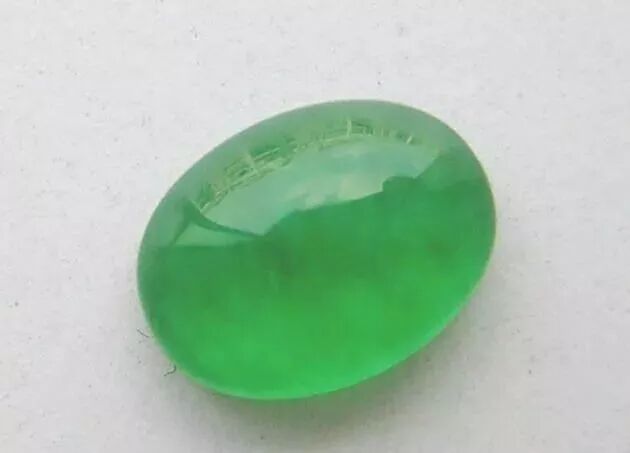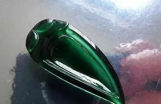 涂膜后的翡翠有了天然绿翡翠的色泽,因为涂上去的是胶状物质,还有一种特殊的光泽感,商家在出售时打个光,很容易让人误以为是高档的绿色翡翠。