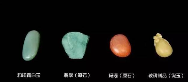 为了形成对比以更加直观形象的向玉友们展示测试的效果,我们选用了和田青白玉、翡翠、玛瑙、玻璃制品的假玉四种玉料进行实验: