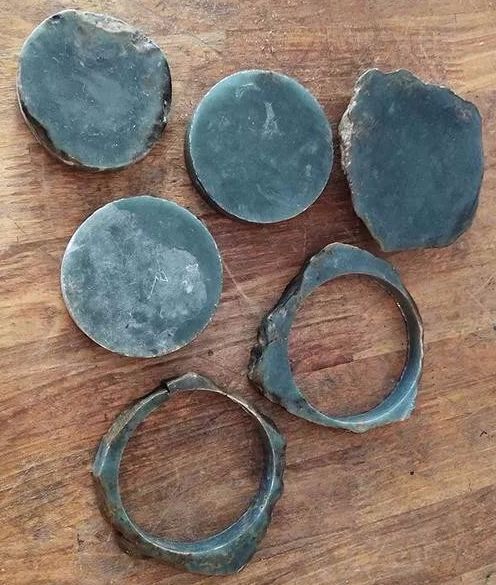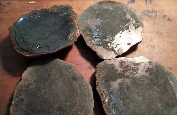 但由于料子大小的缘故,只有两片成功地压出了两个手镯胚,其它的只能另作它用。