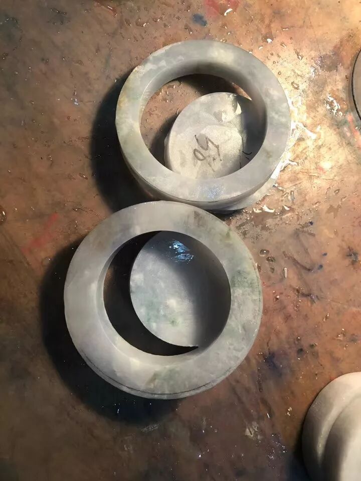 先取出了两个手镯胚,虽然看上去灰乎乎的没什么看点,但每一块粗胚都是纯净柔和的,没有发生变种,就期待抛光后的效果了。