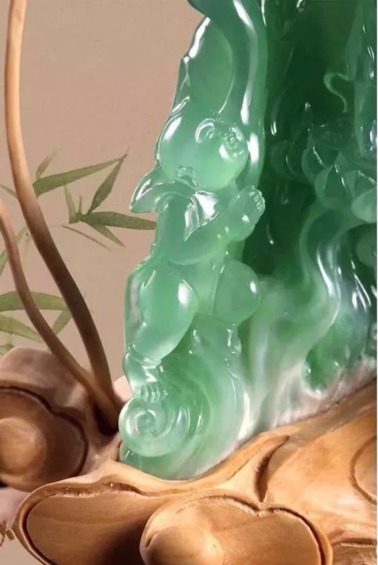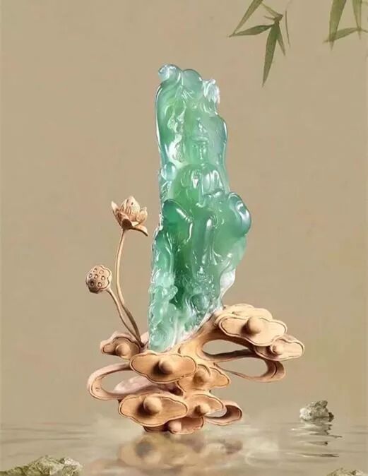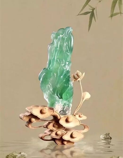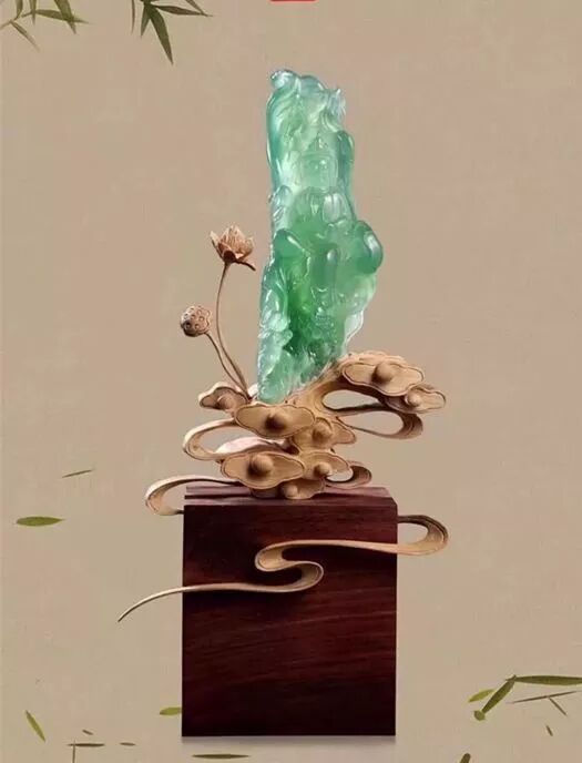层次感强,颜色深浅有度,生意盎然,在给作品镶上一个底座,就更能完美的诠释玉的深情姿色。