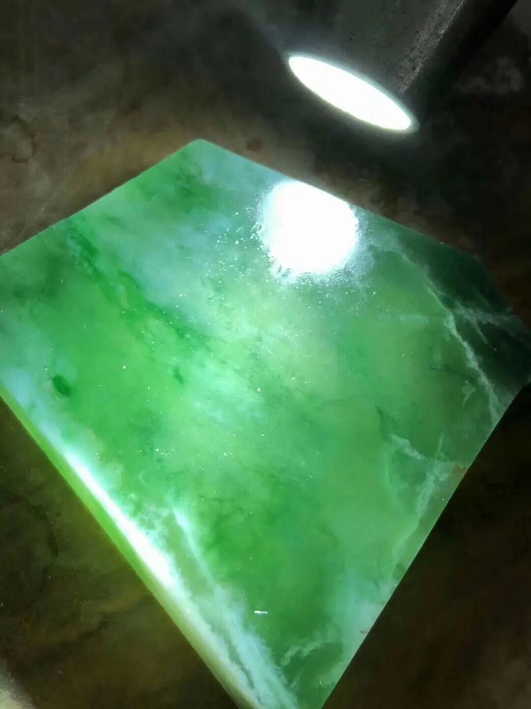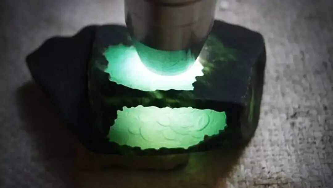 顺着擦口往原石里打光,