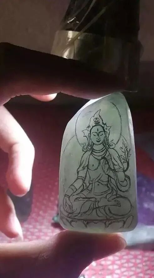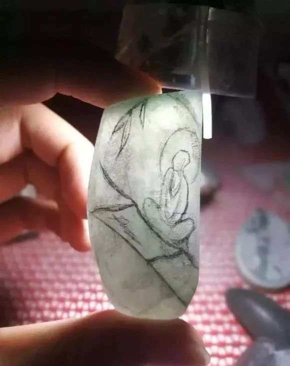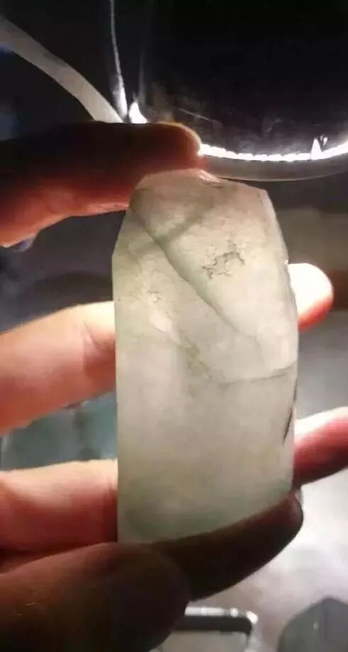首先,给大家看看其中的一块牌子料,从打灯的表现来看,横竖都有明显的裂,但是种水跟底子都达到不错的品质,很多人都怕裂,但是你们看完这片料,你们会知道,裂才是雕刻中的一大题材,好的雕刻师能够很好的利用原石的劣势变成优势,这也是能够把原石的价值进一步提升。