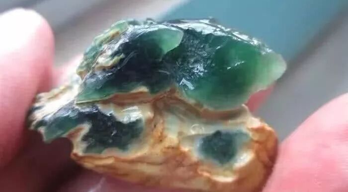 它的形状怪异,奇特,好像是这么一块小原石是分3部分粘在一起的,我给它取了个名字:翡翠“3生子”,这个名字够贴切吧?