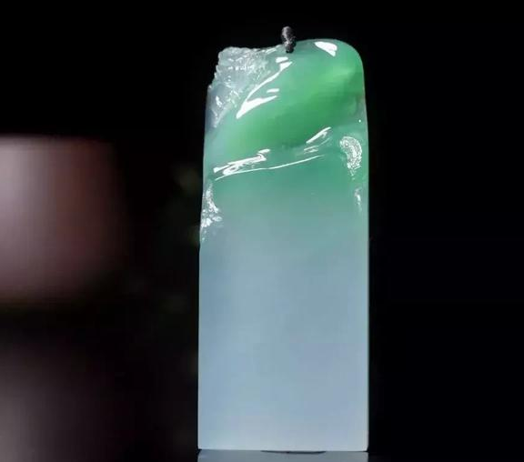 今天跟大家分享一块翡翠方牌挂件,料子为糯冰种飘翠翡翠。色彩上的渐变过渡十分巧妙,虽然不是全冰全绿,这样的翡翠也别有一番趣味。玉雕师采用了传统文化中的龙和佛像作为创作的元素,进行雕刻加工,我们从设计图到成品上一起来看看这个翡翠龙牌挂件吧。