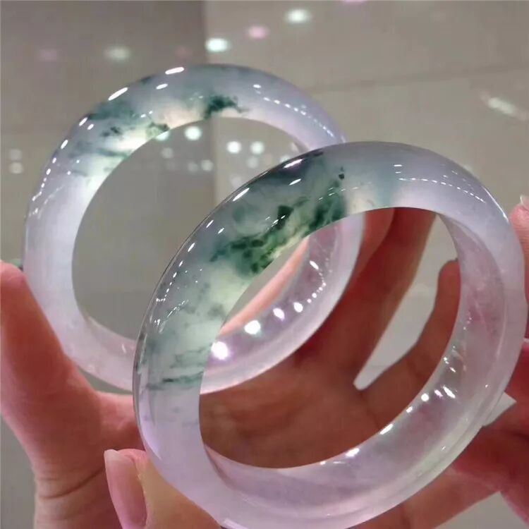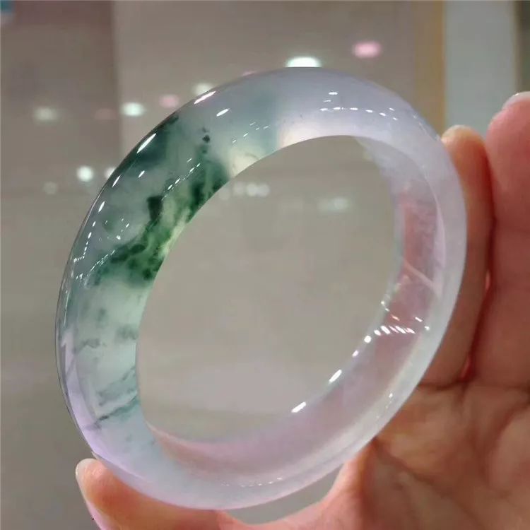 高冰玻璃种飘绿花翡翠手镯,通透玲珑的品质、生动俏丽的花意、整条光感十足!绿意盈盈的芙蓉色调、特色中又不失华丽气息。