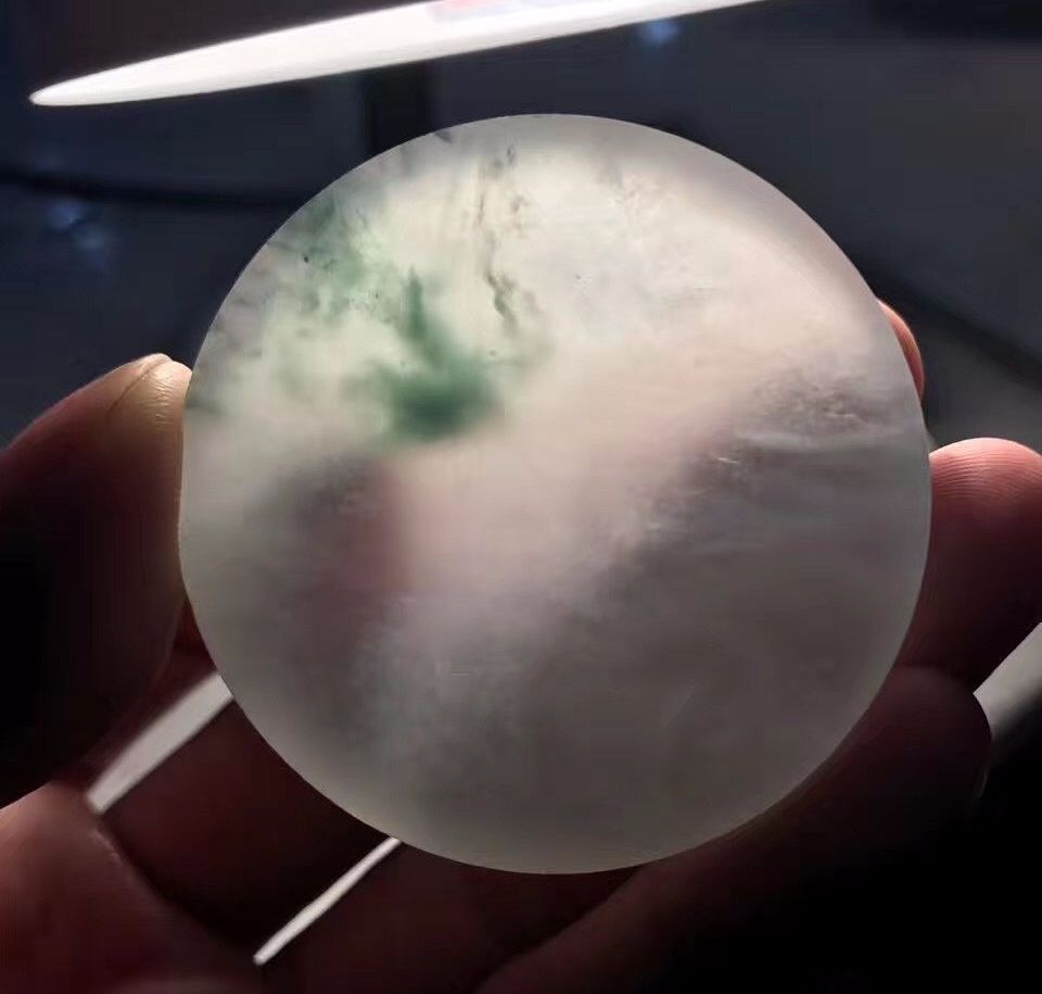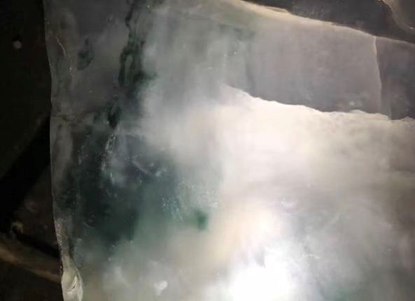 大自然总不会以人的思维来给你满足的,高冰飘花,白肉部分带有雪花棉,这要是完整无裂的话,能出多少高货成品呀,实在让人惋惜。