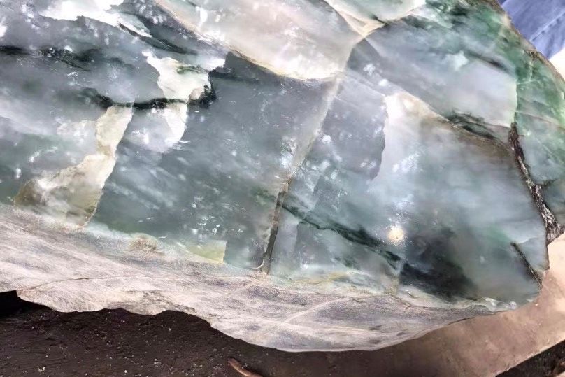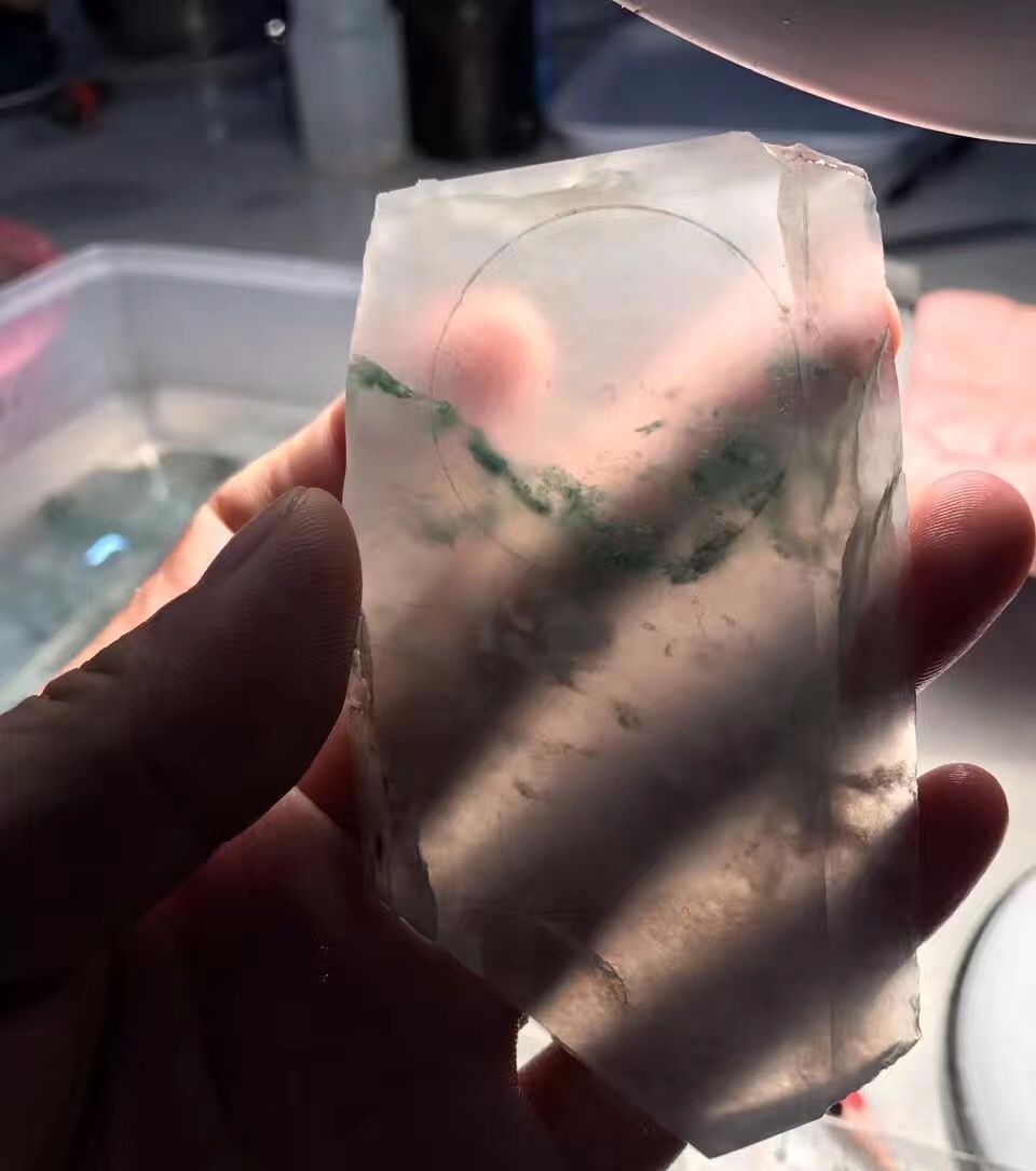 今天给大家欣赏一块满是裂纹的半明料,给大家见识一下,有经验的取料师傅是如何鬼斧神功,完美避瑕取件。