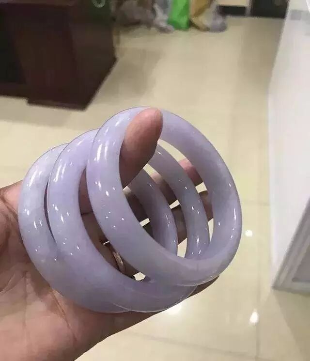 茄子紫底色,一般紫萝兰翡翠到达糯冰现已算是极品,每一条模糊泛光,水润起胶,洁净而又纯真...拿在手中,让人爱不释手,如此美丽的手镯,恐怕一条手镯就能回本了。