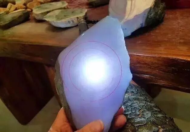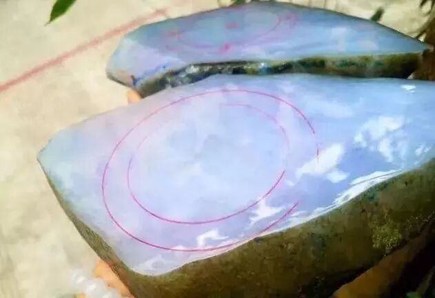 你没有看错,如此般冷艳完美无裂,洁净的根柢,茄子紫底色,打灯目测冰底,冰感杠杠的好,大局通透,肉质细腻,真是紫气东来啊。切出每片都有手镯位,大约能取出3~4条手镯是没问题的。