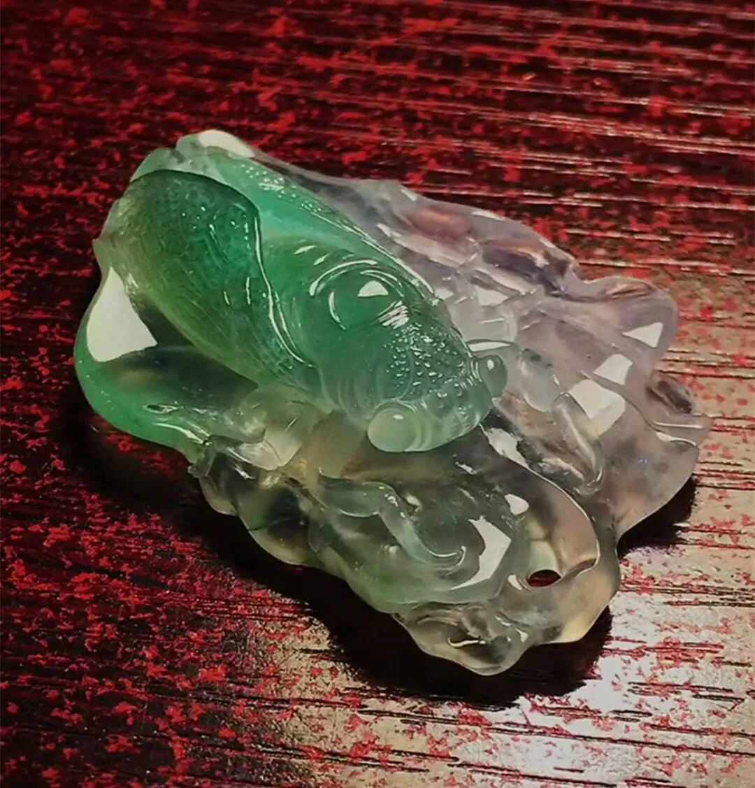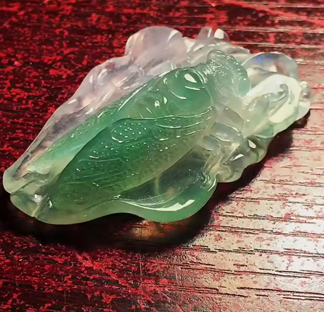 抛光完成,这也太好看了吧,颜色更加的鲜艳明亮,叶子也变得通透而水润,满满的莹光感,这冰感太喜欢了!
