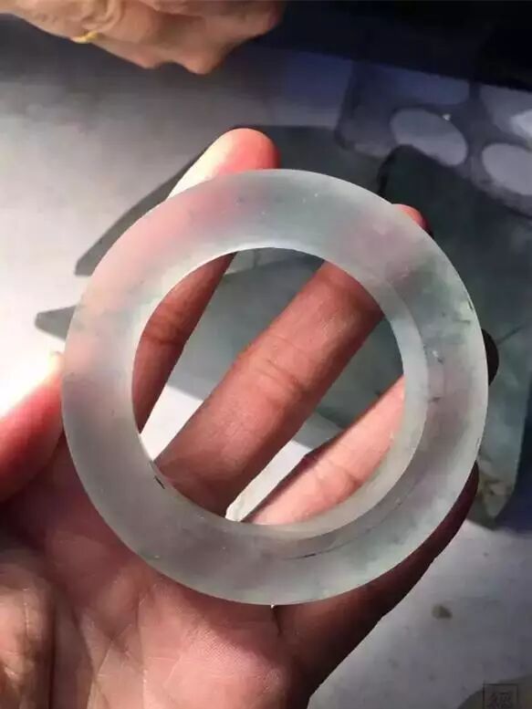 经过打磨抛光之后,成品出炉!这翡翠手镯是不是非常的晶莹剔透。