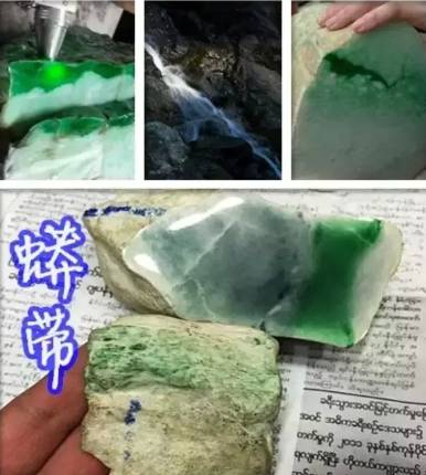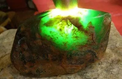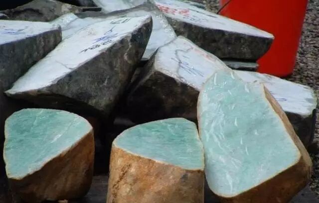 当一块翡翠毛料被挖出来时,工人们就开始对毛料进行研究。找出毛料皮壳的蟒、确定是否有色,有无蟒带的表现,因为翡翠毛料皮壳的特征对翡翠原石的好坏有直接影响!