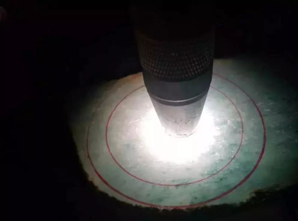 这次我们要说的料子,皮壳呈现灰白色颗粒状,即使在打灯的情况下也没什么表现,小哥也是个豪爽之人,直接就让师傅进行开切。