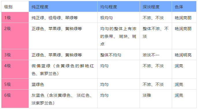 在色温为5000K的连续光源照射下观看翡翠的颜色分级为: