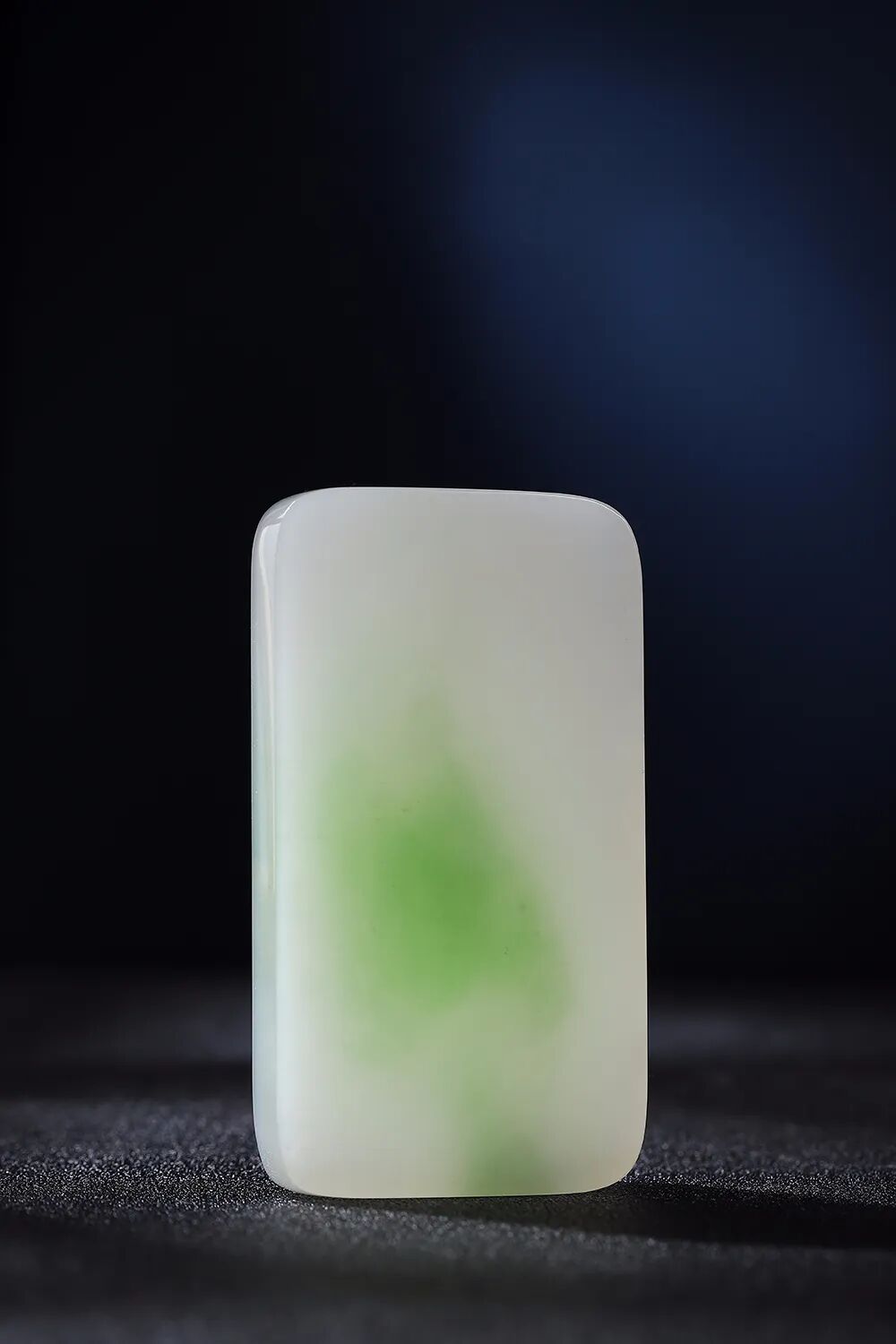 翠青玉,是和田玉的一个特色品种,颜色为翠绿色,有一般白玉的凝重内敛,又不失翡翠的鲜活灵动,清丽脱俗。其绿色附在白底上,似春天枝头的嫩芽,给人以生机盎然、蓬勃向上的感觉。