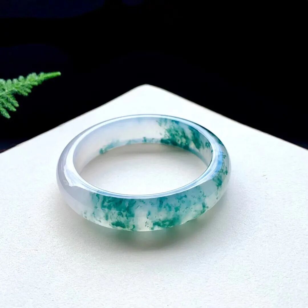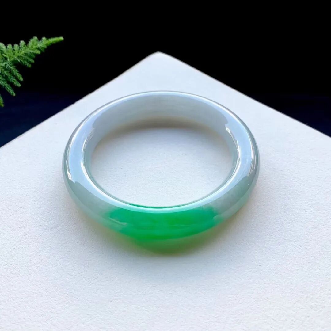 大多数紫色翡翠中时长夹有一些淡的绿色,