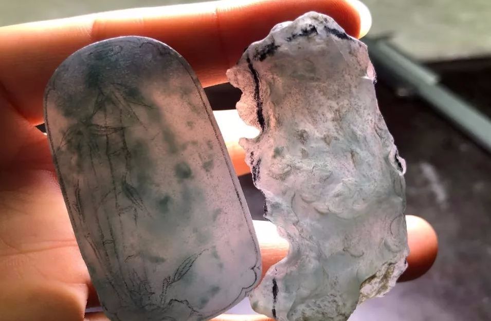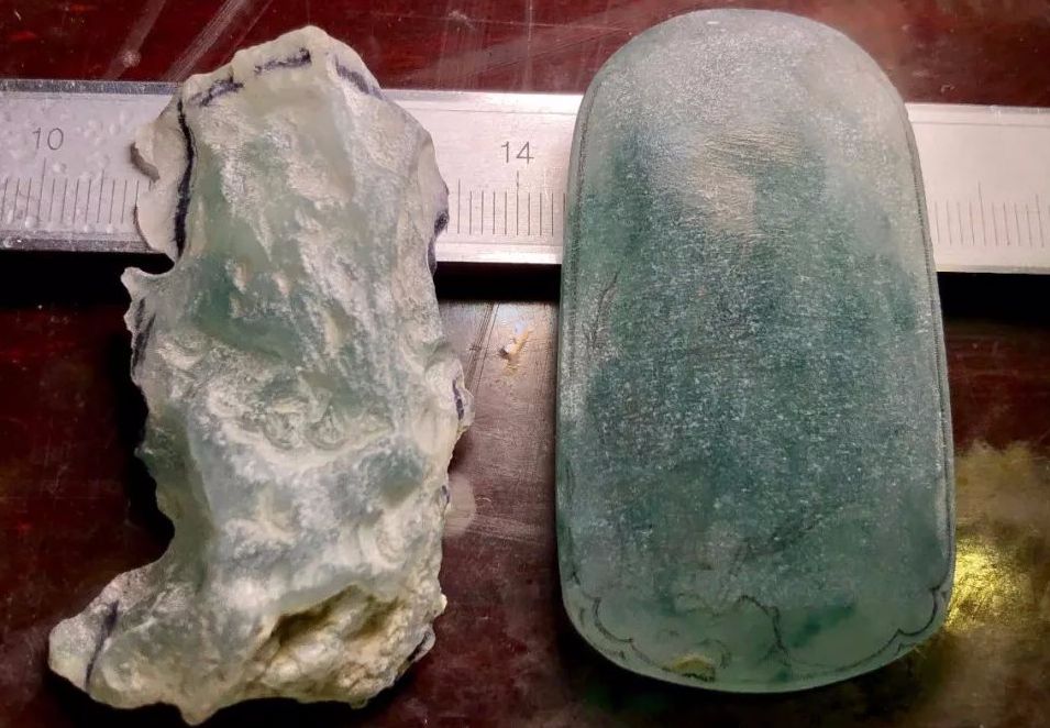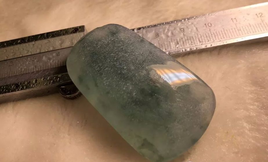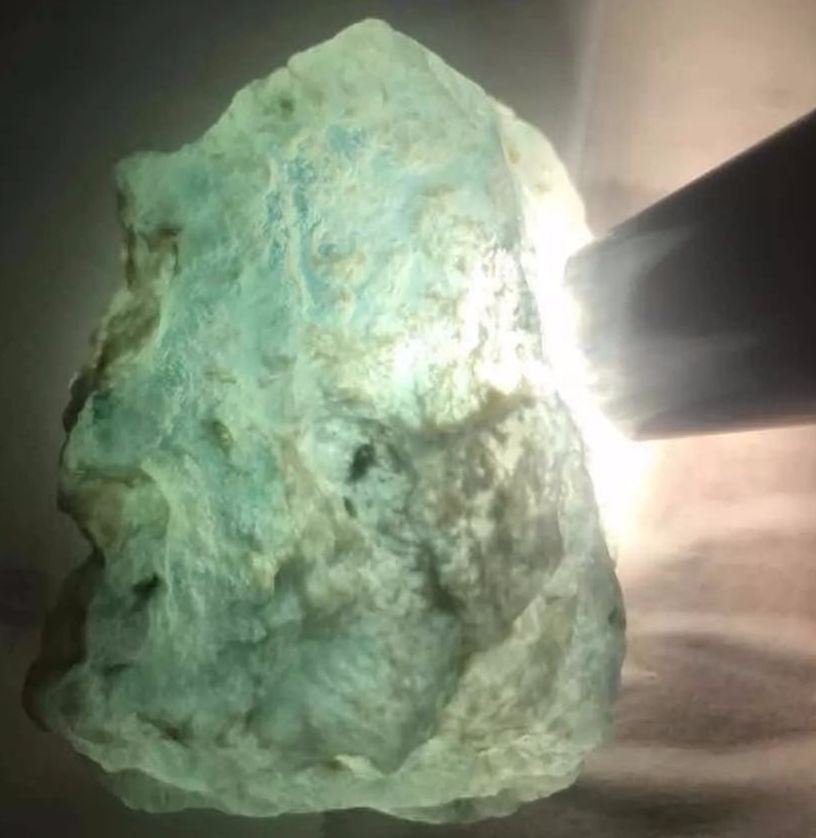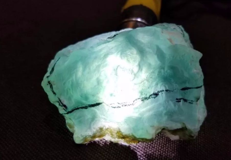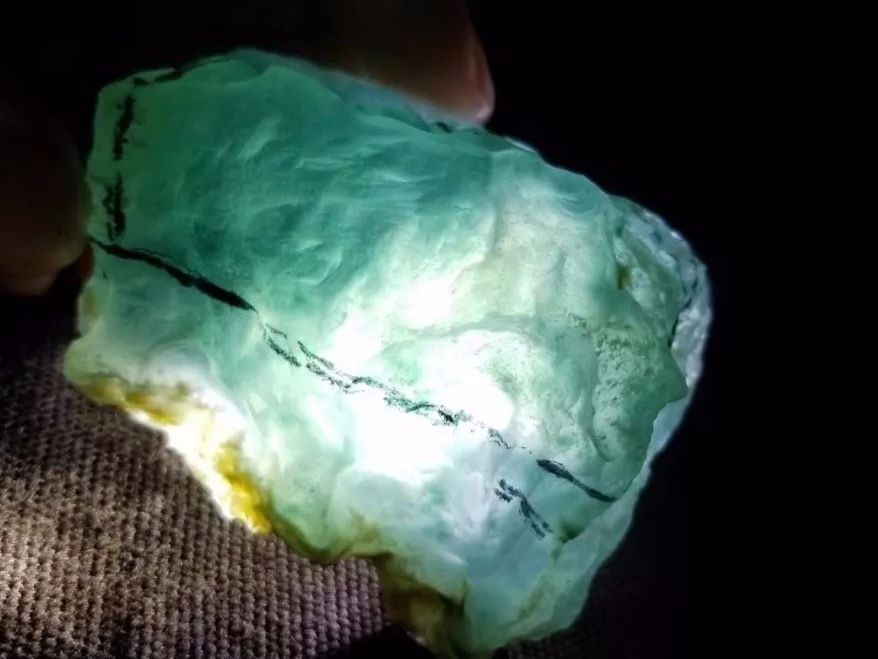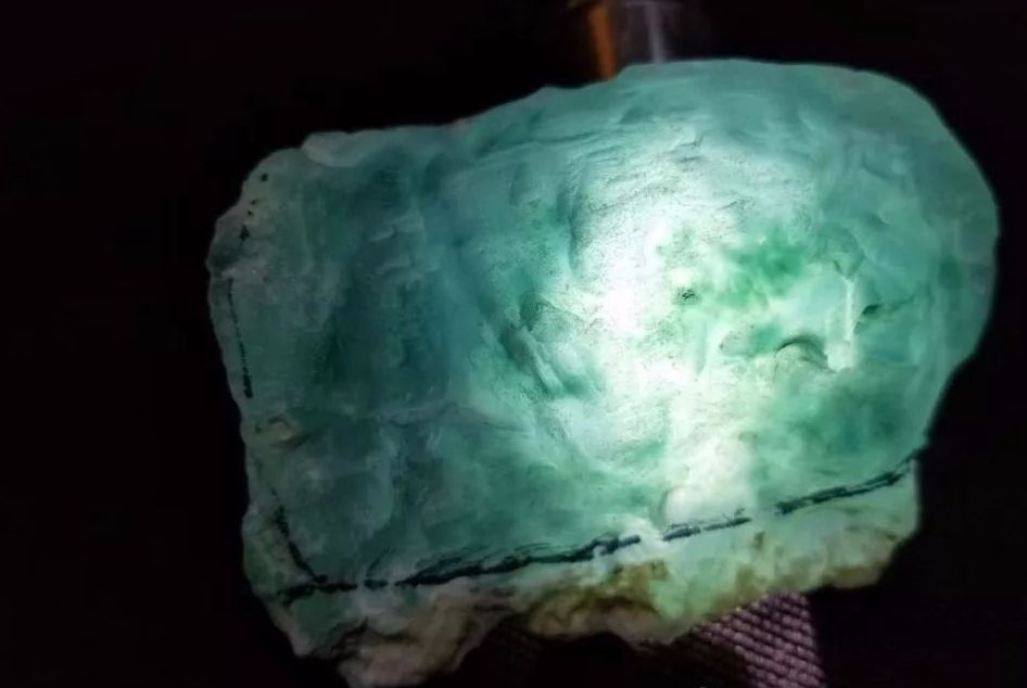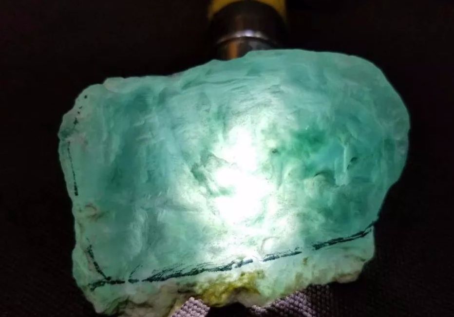 身披白纱,灯下通透,这块原石果然品质不凡 。