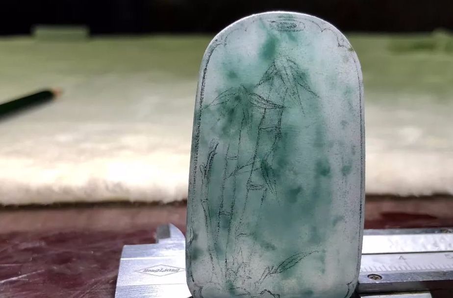 原石本就不大,先取下一块玉牌,整体形状已经设定,接下来就选材设计了。