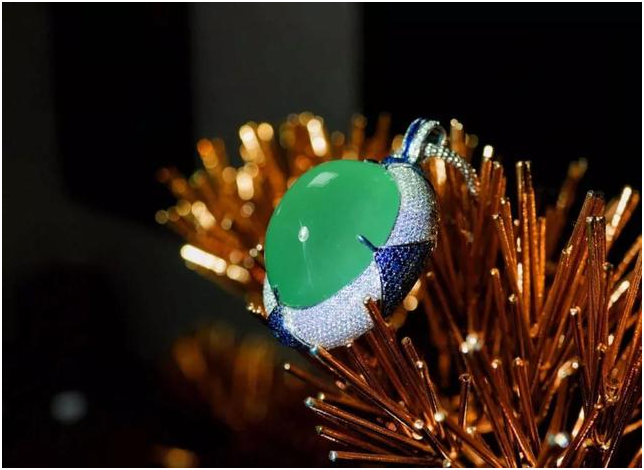 原来是一件翡翠晴绿冰巨蛋吊坠,