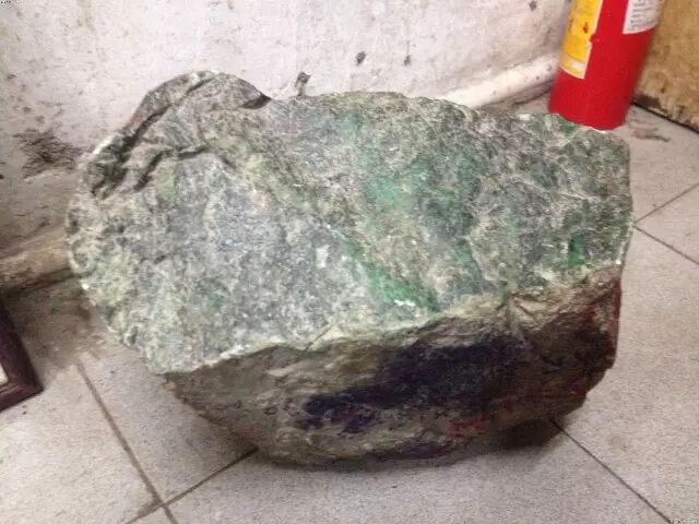 翡翠次生矿,个头大小悬殊,小的如弹丸、大的可重大数百公斤乃至数吨以上,它与原生矿最大的不同之处在于表面有一层皮壳包裹,次生翡翠原石是缅甸翡翠最重要的玉石类型,其重要性远远超过原生矿。