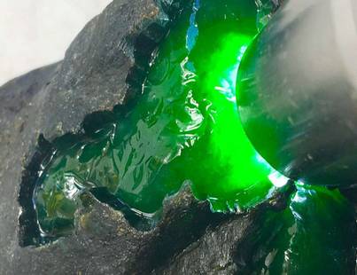 翡翠原生矿未经搬运和迁移,也没有遭受过明显的次生地质改造,保留了最原始山岩玉的特性。因为没有发生次生矿物质的充填现象,玉石得不到密实,因而玉石就只能保持在结构相对疏松、密度相对低的原始状态,玉石种质也就得不到改善和提升,因此总体来说翡翠原生矿的质量一般比较差,优质玉料比较少见。