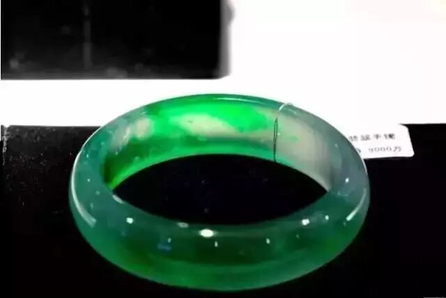 这是一个玻璃种飘花平安镯,2015年出现在昆明博览会,整体相当通透,手镯的绿色却像是绿色的仙气飘在其中,越看越有味道,市价9000万。