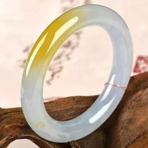 最优质的黄翡往往形成于翡翠水石的外皮,厚度较小,优质黄翡的料也小,很难做成手镯,所以优质的黄翡翡翠手镯显得很珍贵。