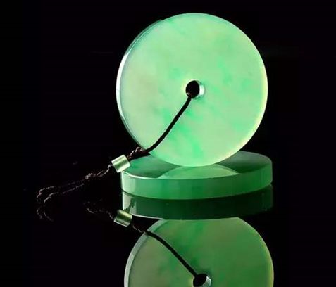 而翡翠制成的平安扣,