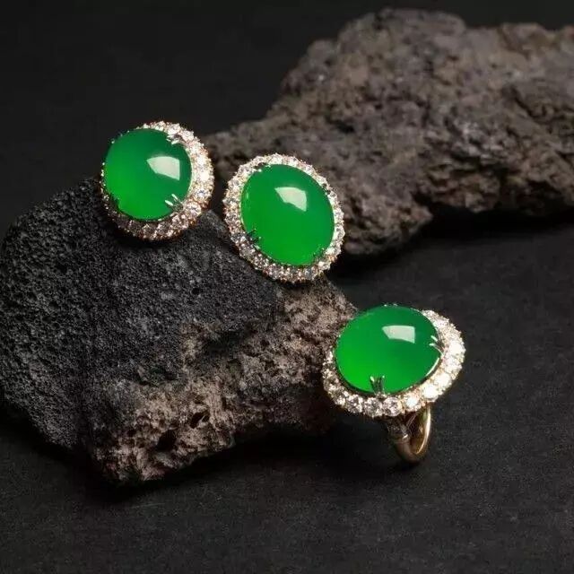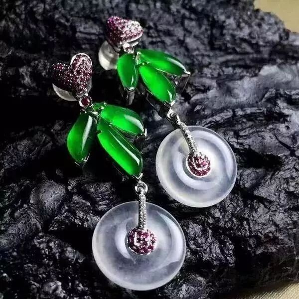 在地质运动和外环境的作用下,翡翠内部置换了铝元素的部分,就会展现出绿意,而其他的元素则会变成黑色的团状、块状、点状物体。