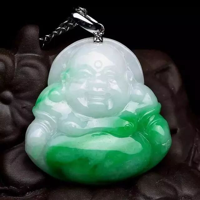 在有颜色的翡翠成品或翡翠原料中,我们经常可以看见,翡翠上有点状或者是条带状的深一点的颜色,它又慢慢渐变、过渡到相对较浅的颜色中。