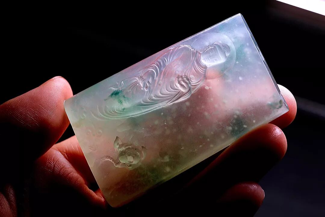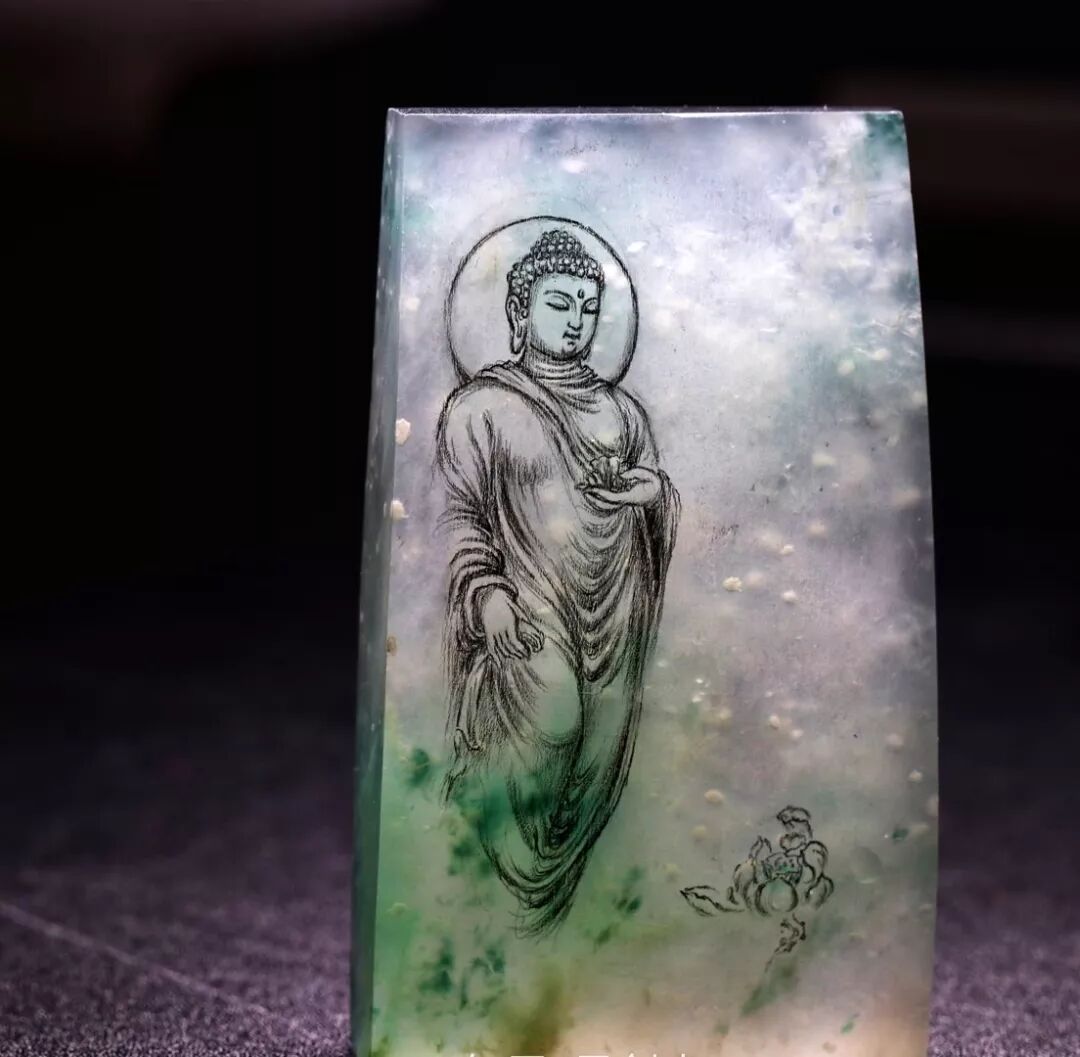 冰种翡翠雪花棉片料,起货释迦佛大牌,直接看实物太漂亮了!
