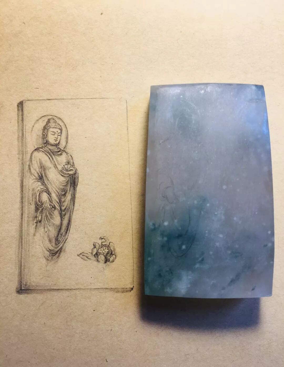 将料子画在片料上,冰感很强,亮眼十足,其实感觉这样已经够美了,已经是一件美物了,下面开始雕刻喽!